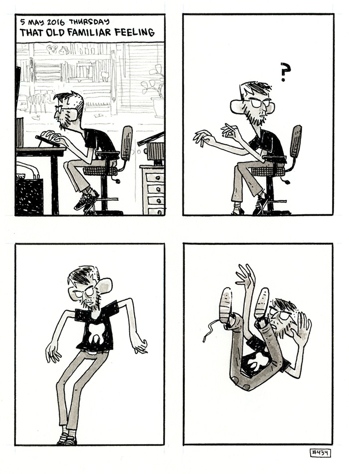 Dustin Harbin Comics|Blog|Work|Store Patreon | Instagram | TwitterInprnt | Threadless | Society6email: DUSTY[at]DHARBIN[dot]COM Home||Comics|Blog|Store| Archive|RSS||<< First|Last >>||< Previous|Next > DIARY :: May 5, 2016 :: That Old Familiar Feeling Pardon our progress, and by our I mean me, and by progress I mean being alive.Collected in the brand new Diary Comics #5, available here.