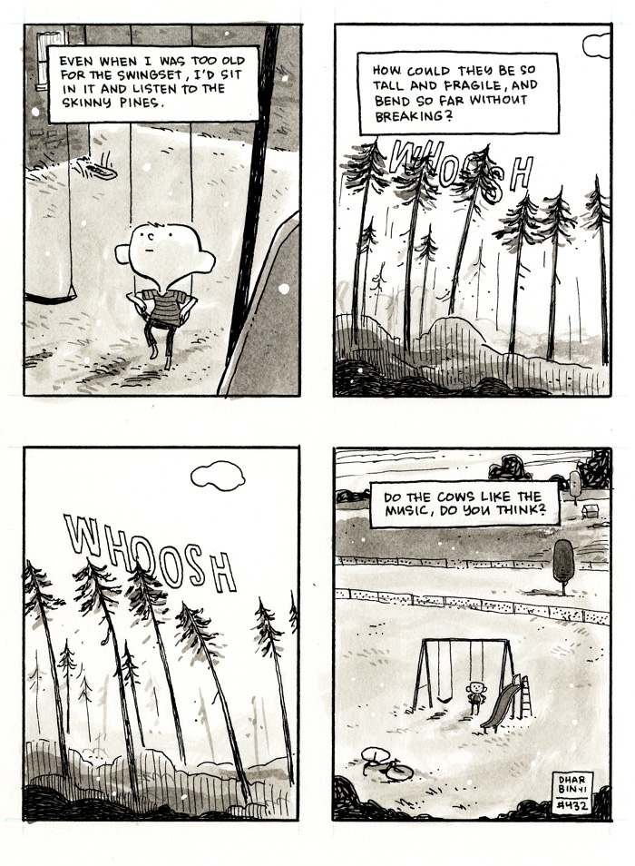 Dustin Harbin Comics|Blog|Work|Store Patreon | Instagram | TwitterInprnt | Threadless | Society6email: DUSTY[at]DHARBIN[dot]COM Home||Comics|Blog|Store| Archive|RSS||<< First|Last >>||< Previous|Next > DIARY :: April 21, 2016 :: Remembering The Pines I think this is maybe... my favorite memory? They still haven't invented a better sound.