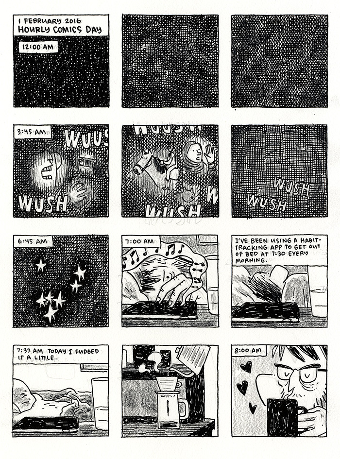 It's been a long time since I did Hourly Comics Day--I think it was 2010, way back when I first started making diary comics. As I start making diary comics again, it felt appropriate to do hourlies--it's a good workout, for sure, and as other people have said, it's a good thing it's only once a year.
