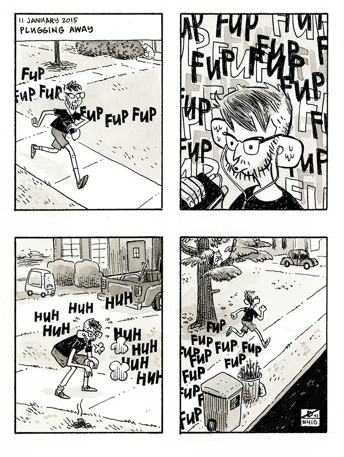 Dustin Harbin Comics|Blog|Work|Store Patreon | Instagram | TwitterInprnt | Threadless | Society6email: DUSTY[at]DHARBIN[dot]COM Home||Comics|Blog|Store| Archive|RSS||<< First|Last >>||< Previous|Next > DIARY :: January 11, 2016 :: Plugging Away I hate running.